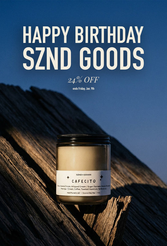 At SZND GOODS, we believe candles are more than just fragrance—they’re memories, moods, and moments captured in wax. Every candle is hand-poured in small batches using clean-burning coconut soy wax and premium fragrance oils, making them safer for your home, pets, and loved ones.